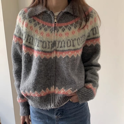 on.[CD514]레터링노르딕집업가디건