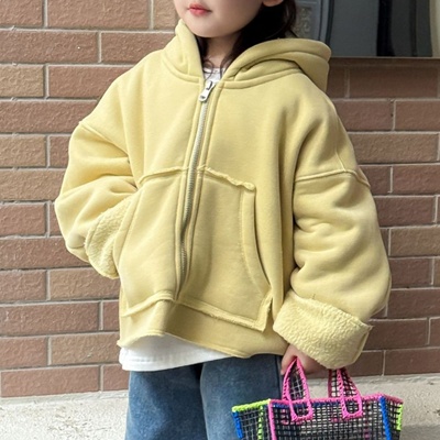비다이어리.유피크림기모후드집업